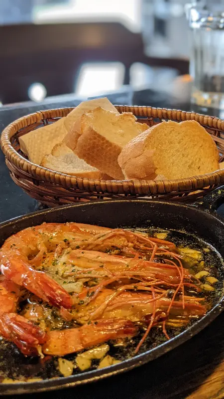 이어서 등장한 감바스 알 아히요는 올리브 오일에 마늘과 새우를 넣어 끓인 스페인 대표 타파스 요리다. 지글거리는 소리와 함께 풍겨오는 마늘 향은 식욕을 더욱 자극했다. 커다란 새우들이 올리브 오일에 잠겨있는 모습은 보기만 해도 군침이 돌았다.