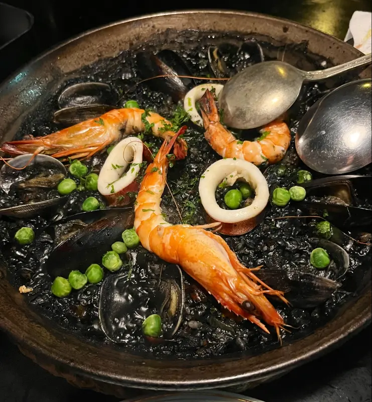 해산물이 듬뿍 들어간 검은 쌀 빠에야는 엘 시드의 대표 메뉴다.
