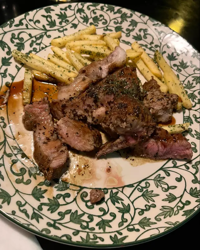 육즙 가득한 스테이크와 바삭한 감자튀김의 완벽한 조화.
