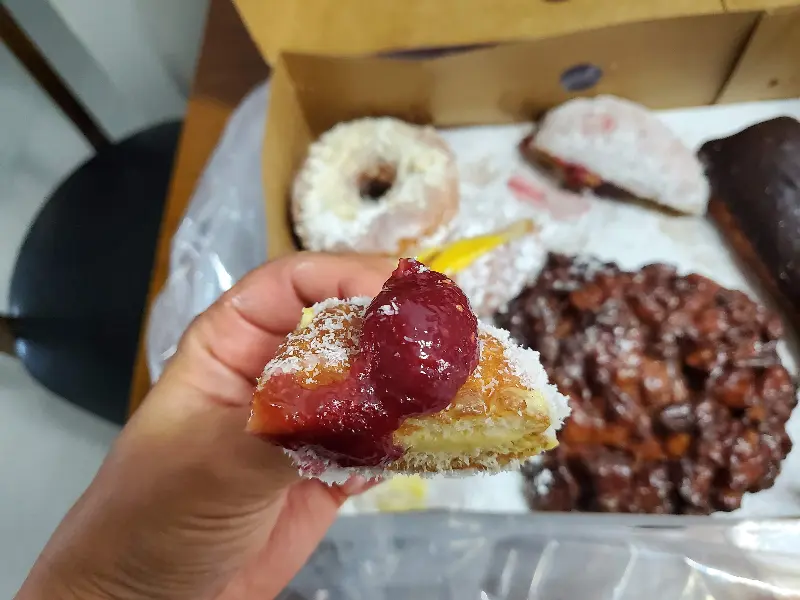 다음은 레몬필링 도넛. 상큼한 레몬 필링이 입안 가득 퍼지면서 느끼함을 잡아준다. 달콤하면서도 상큼한 맛이 조화롭게 어우러진다. 애플프리터는 겉은 바삭하고 속은 촉촉해서 씹는 재미가 있다. 은은한 사과 향이 향긋하게 느껴진다.