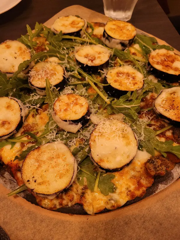 가장 먼저 눈에 띈 것은 가지 피자였다. 평소 가지를 즐겨 먹지 않는 나였지만, 친구의 강력 추천에 용기를 내어 주문해 보았다. 피자가 나오자, 얇은 도우 위에 큼지막하게 썰린 가지와 루꼴라, 치즈가 듬뿍 올려져 있었다. 한 조각을 들어 입에 넣는 순간, 놀라움이 밀려왔다. 가지 특유의 물컹한 식감은 전혀 느껴지지 않았고, 겉은 바삭하고 속은 촉촉한 완벽한 조리였다. 루꼴라의 향긋함과 치즈의 고소함이 어우러져 환상의 맛을 선사했다. 가지를 싫어하는 아이들도 분명 좋아할 것 같다는 생각이 들었다.