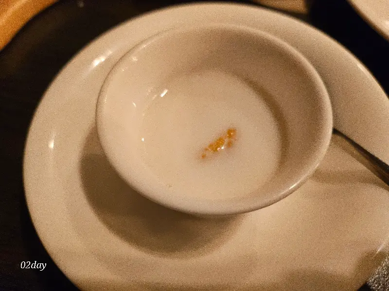 식사를 마치고 나니, 후식으로 작은 컵에 담긴 셔벗이 나왔다. 입안을 깔끔하게 마무리해주는 상큼한 맛이었다. 마지막까지 완벽한 식사였다.