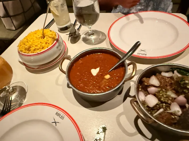 라자스탄 라이플스에서의 식사는 정말 만족스러웠습니다. 음식, 분위기, 서비스 모든 면에서 흠잡을 데가 없었습니다. 홍콩에 다시 방문하게 된다면, 꼭 다시 찾고 싶은 곳입니다.