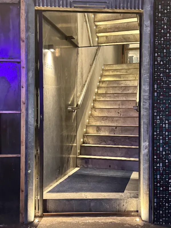 Belon으로 향하는 콘크리트 계단, 미식의 세계로 초대하는 듯한 신비로운 분위기를 자아낸다.