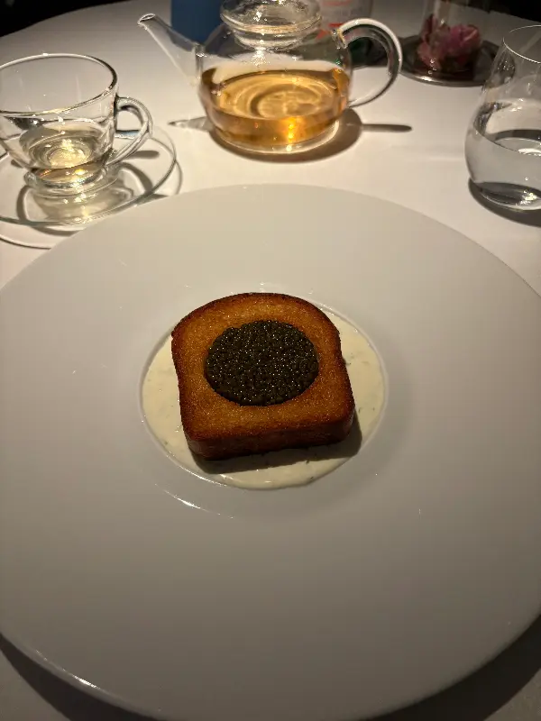 캐비아를 듬뿍 올린 토스트, 입안 가득 퍼지는 바다의 풍미를 느낄 수 있다.