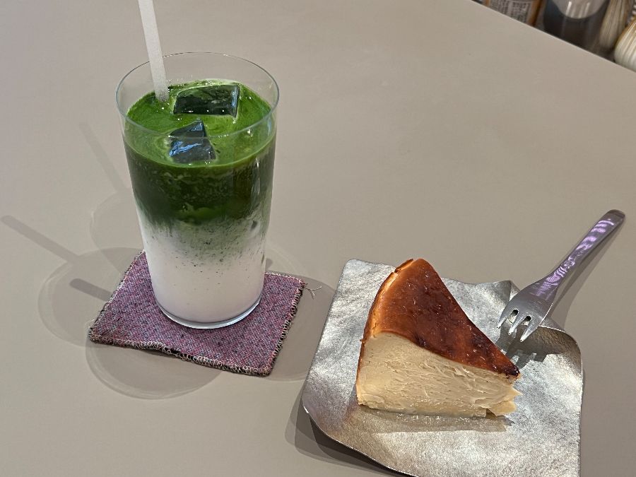 말차 라떼와 함께 곁들일 디저트를 고민하다가 치즈 케이크를 주문했다. 콤마 커피숍의 치즈 케이크는 겉은 살짝 구워져 있고, 속은 촉촉하고 부드러운 것이 특징이었다. 한 입 베어 무는 순간, 진한 치즈의 풍미가 입안 가득 퍼져 나갔다. 꾸덕하면서도 부드러운 식감은 혀끝을 즐겁게 했고, 말차 라떼와 함께 먹으니 그 맛이 더욱 배가되었다. 너무 달지도 느끼하지도 않아서 질리지 않고 계속 먹을 수 있었다.