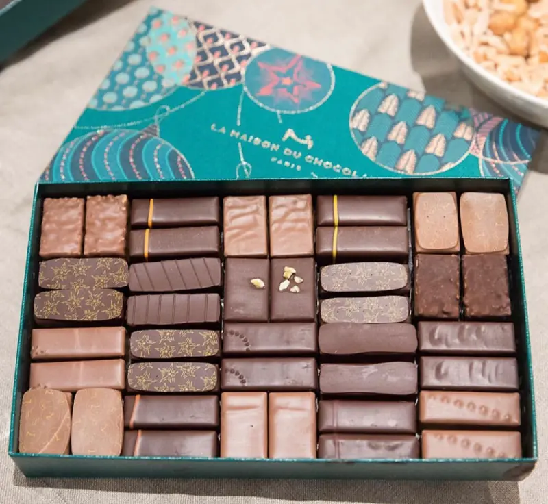 문을 열고 들어서자, 고급스러움이 물씬 풍기는 인테리어와 함께 눈길을 사로잡는 것은 다채로운 초콜릿 패키지였습니다. 에메랄드빛 상자에 정갈하게 담긴 초콜릿들은 그 자체로 예술 작품과 같았습니다. 받는 사람의 마음까지 풍요롭게 만들어줄 것 같은 선물 포장은, 라 메종 뒤 쇼콜라가 단순한 초콜릿 가게가 아닌 특별한 경험을 선사하는 공간임을 느끼게 했습니다.