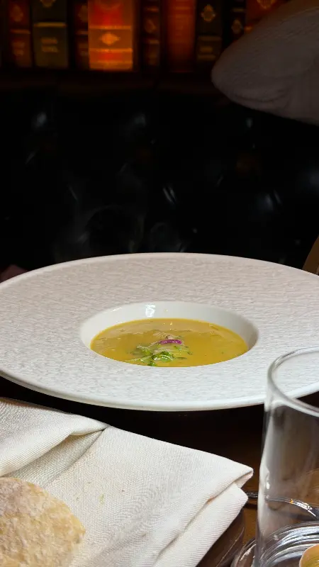 레스토랑 내부는 고풍스러운 서재를 연상시키는 인테리어로 가득 차 있어, 마치 유럽의 고전 도서관에 온 듯한 느낌을 줍니다.