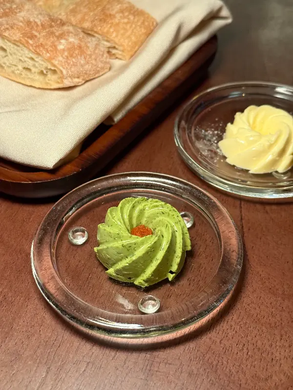식사 전 제공되는 따뜻한 빵과 버터는 입맛을 돋우는 역할을 하며, 섬세한 서비스에 대한 기대를 높여줍니다.