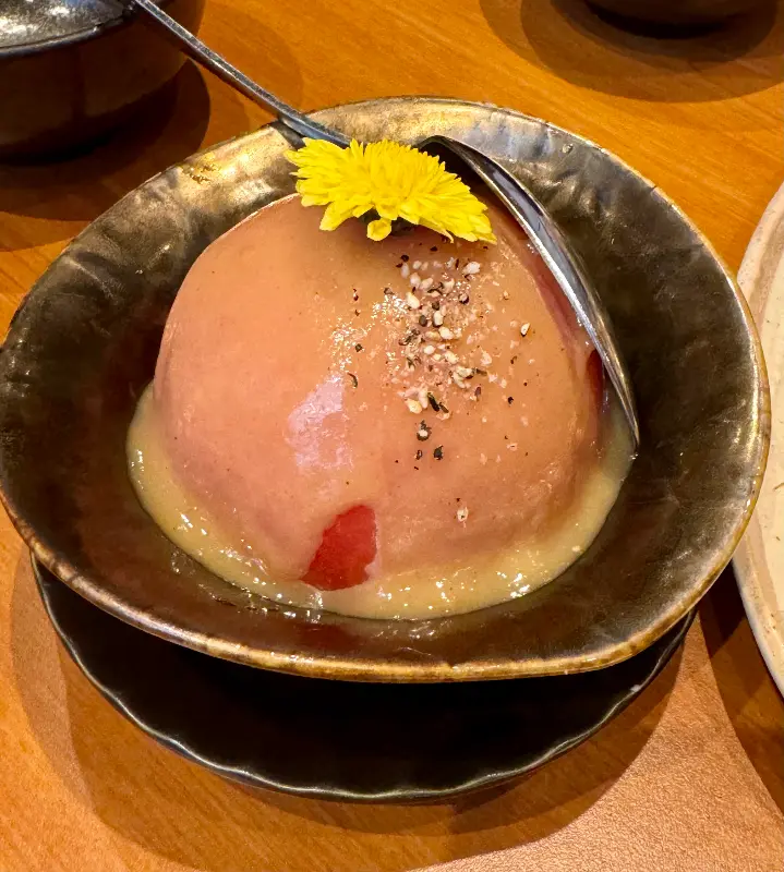 구운 돼지고기 덮밥은 센료의 인기 메뉴 중 하나. 3~4년 넘게 꾸준히 사랑받고 있다는 리뷰에 나도 모르게 기대감이 부풀어 올랐다. 달콤짭짤한 소스와 돼지고기의 조화는 상상만으로도 군침이 돌았다. 게다가 오늘은 운 좋게 기름기가 많지 않은 돼지고기를 받았다는 후기를 보니, 오늘 나의 선택은 틀림없이 옳았다는 확신이 들었다. 예전에는 전채 요리로 사시미 두 조각이 나왔지만, 이제는 계란찜으로 바뀌었다는 점은 조금 아쉬웠지만, 그래도 여전히 맛있다는 평에 위안을 삼았다.