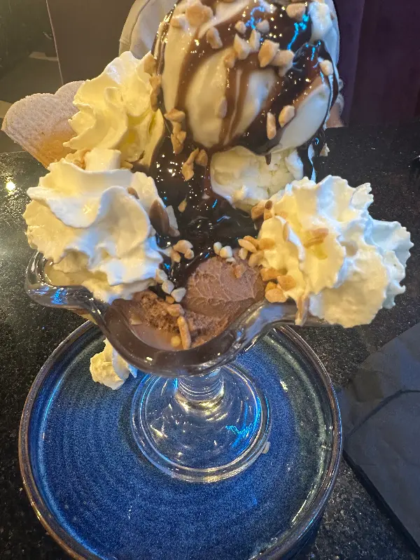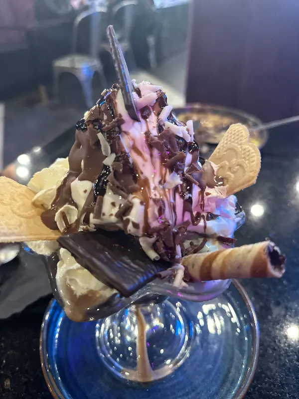 맛있는 디저트, 훌륭한 서비스, 그리고 푸짐한 양! 딸기와 바닐라 아이스크림을 곁들인 와플을 주문했어요 (추가 스쿱 주문). 네 명이 나눠 먹기에 충분했어요. ‘케이크 한 조각’ 밀크셰이크도 정말 맛있었고, 특히 케이크가 정말 맛있었어요! 피스타치오 밀크 케이크도 먹어봤는데 괜찮았어요!
