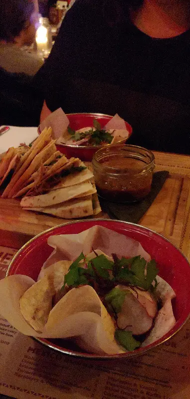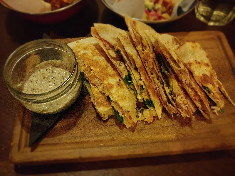 퀘사디아와 함께 제공된 소스는 퀘사디아의 맛을 한층 더 끌어올려 주었다. 살짝 매콤하면서도 크리미한 소스는 퀘사디아의 느끼함을 잡아주고, 입맛을 돋우는 역할을 했다.
