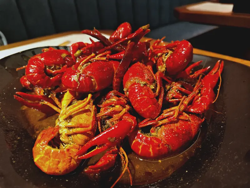 매운 가재 외에도 다양한 가재 요리를 맛볼 수 있다는 점이 이 집의 큰 매력이다. 두 번째 방문에서는 ‘마라 가재’를 주문해봤다. 마라 특유의 얼얼하면서도 매콤한 맛이 가재와 환상적인 조화를 이루었다. 또한, 함께 제공되는 채소와 함께 먹으니, 아삭한 식감과 신선한 풍미가 더해져 더욱 맛있었다.