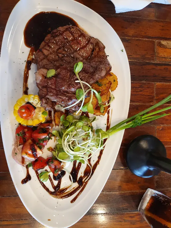 스테이크와 함께 나온 гарнир도 훌륭했다. 구운 옥수수, 아스파라거스, 토마토 등 신선한 채소들은 스테이크의 풍미를 더욱 돋보이게 했다. 특히, 옥수수는 달콤하면서도 고소한 맛이 일품이었다. 스테이크를 한 입 먹고, гарнир를 곁들이니, 입안 가득 행복이 퍼져 나갔다.