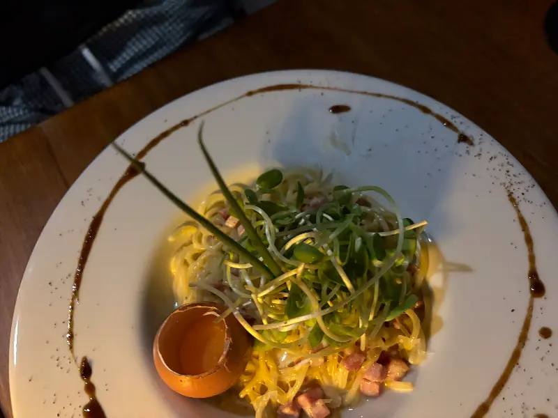 스테이크만큼이나 인상적이었던 메뉴는 바로 와규 카르보나라였다. 호주산 와규 +9 등급을 사용했다는 설명에 기대감이 컸다. 노른자를 톡 터뜨려 면과 함께 비비니, 윤기가 자르르 흐르는 모습이 식욕을 자극했다.