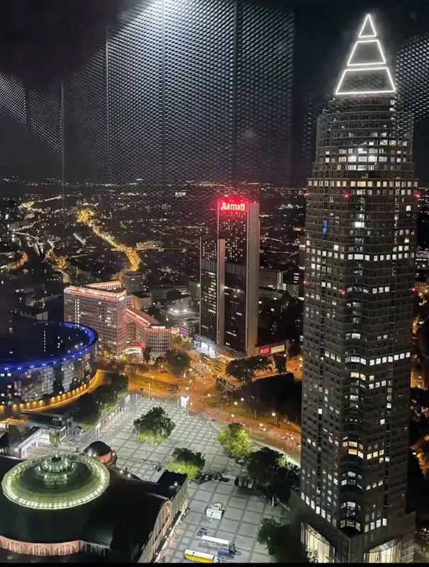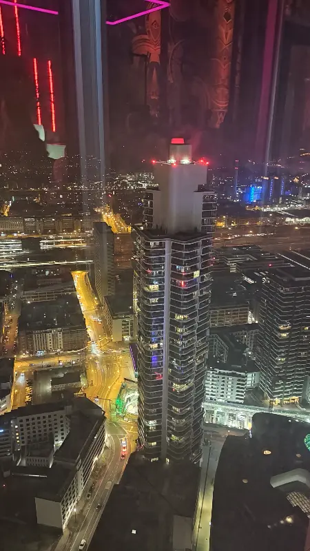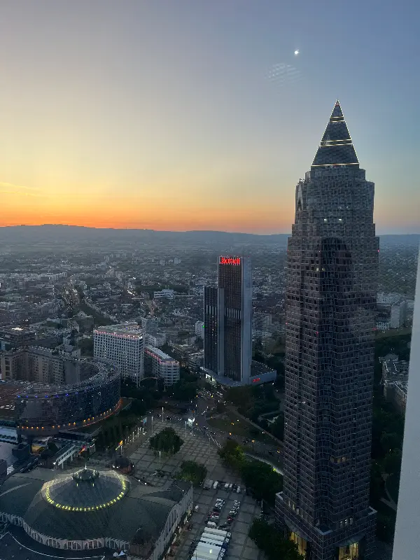호텔 로비를 지나 엘리베이터를 타고 47층에 도착하자, 탄성이 절로 나왔다. 통유리창 너머로 펼쳐지는 프랑크푸르트의 야경은 그야말로 장관이었다. 마치 하늘에서 쏟아지는 듯한 별빛 아래, 붉고 노란 도시의 불빛들이 캔버스 위 물감처럼 번져 나갔다.
