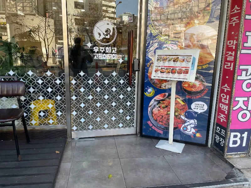 가게 입구에 세워진 메뉴판. 다양한 메뉴들이 손님들을 유혹한다.