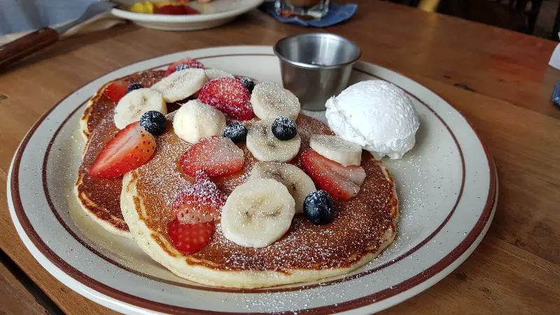 베이컨 에그 팬케이크는 또 다른 즐거움을 선사했습니다. 겉은 바삭하고 속은 촉촉한 팬케이크 위에, 짭짤한 베이컨과 부드러운 스크램블 에그가 얹어져 있었죠. 달콤한 시럽을 뿌려 먹으니, 단짠의 조화가 환상적이었습니다. 빵의 부드러움은 마치 구름을 먹는 듯한 기분을 선사했죠.