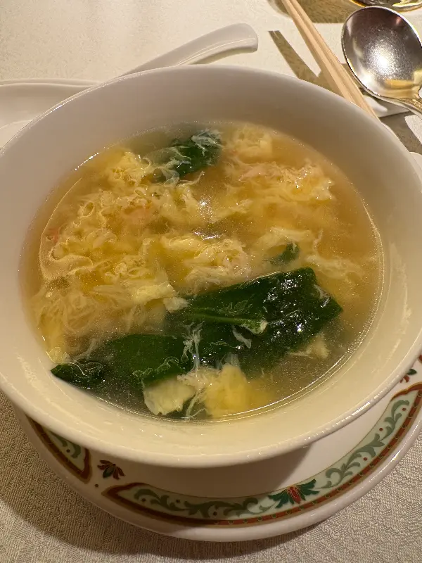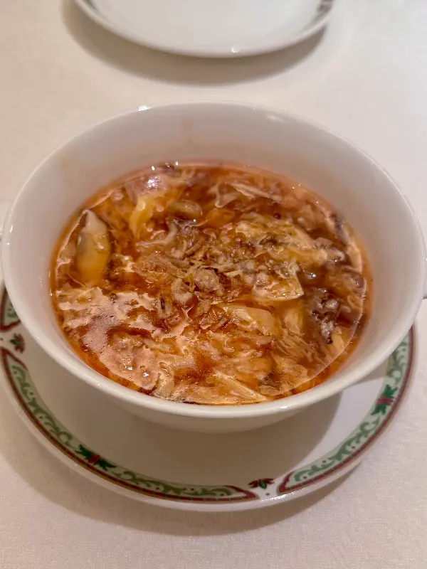 특히 인상 깊었던 메뉴는 바로 ‘게살이 들어간 푹신한 수프’였습니다. 따뜻하고 부드러운 수프는 입에 넣는 순간 게살의 풍미가 입안 가득 퍼져 나갔습니다. 마치 벨벳처럼 부드러운 질감과 은은한 게 향은 잊을 수 없는 맛의 경험을 선사했습니다. 한 모금, 한 모금 음미할 때마다 행복감이 밀려왔습니다.