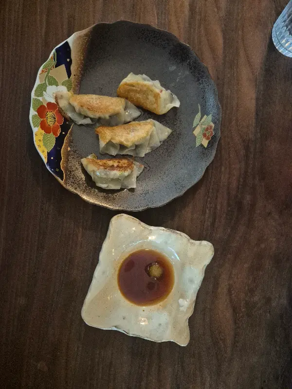 윤기가 자르르 흐르는 교자의 모습! 얇은 피와 바삭한 식감이 일품입니다.