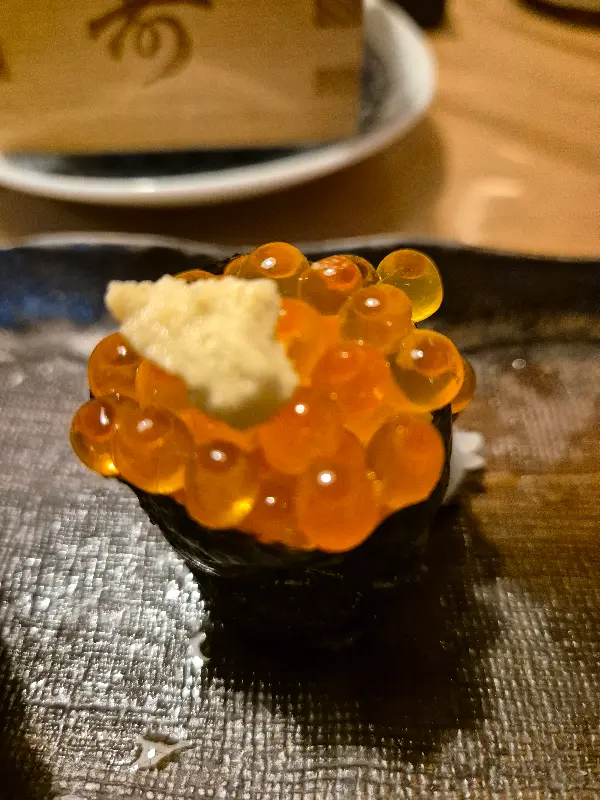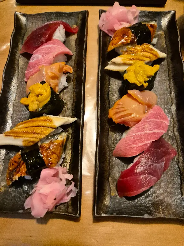 이 곳의 또 다른 매력은 바로 친절한 서비스였습니다. 점원분들은 한결같이 밝은 미소로 손님들을 맞이했고, 스시를 만들어주시는 분 역시 따뜻한 미소와 함께 정성껏 스시를 만들어 주셨습니다. 자리가 없어 일본인 두 분과 합석하게 되었지만, 전혀 불편함 없이 식사를 즐길 수 있었습니다. 오히려 그 분들의 유쾌한 대화 덕분에 더욱 즐거운 시간을 보낼 수 있었죠.