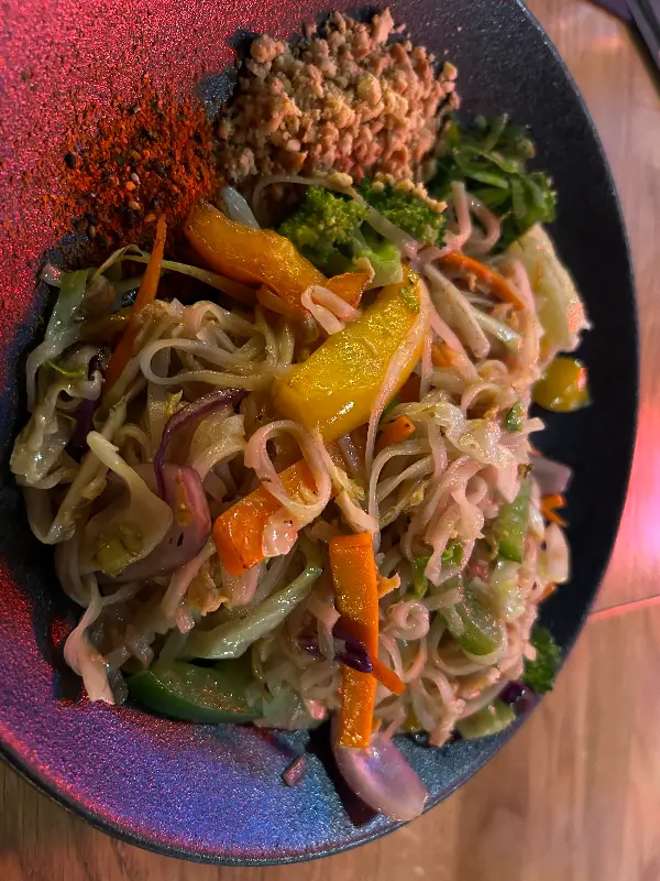 팟타이는 한국에서 먹던 것과는 조금 다른 맛이었습니다. 면은 조금 더 얇고, 소스는 조금 더 새콤했습니다. 하지만 전체적으로 밸런스가 잘 잡혀 있었고, 무엇보다 신선한 재료들이 맘에 들었습니다. 특히 고소한 땅콩 가루와 아삭한 숙주, 새콤한 라임이 어우러져 훌륭한 맛을 만들어냈습니다.