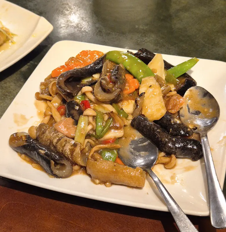 가장 먼저 맛본 것은 동파육이었다. 윤기가 자르르 흐르는 큼지막한 동파육은 보기만 해도 군침이 돌았다. 젓가락으로 살짝 건드리니, 결대로 부드럽게 찢어졌다. 입에 넣는 순간, 마치 솜사탕처럼 녹아내리는 듯했다. 짜지 않고 은은한 단맛이 감돌아, 아이도 부담 없이 즐길 수 있었다.