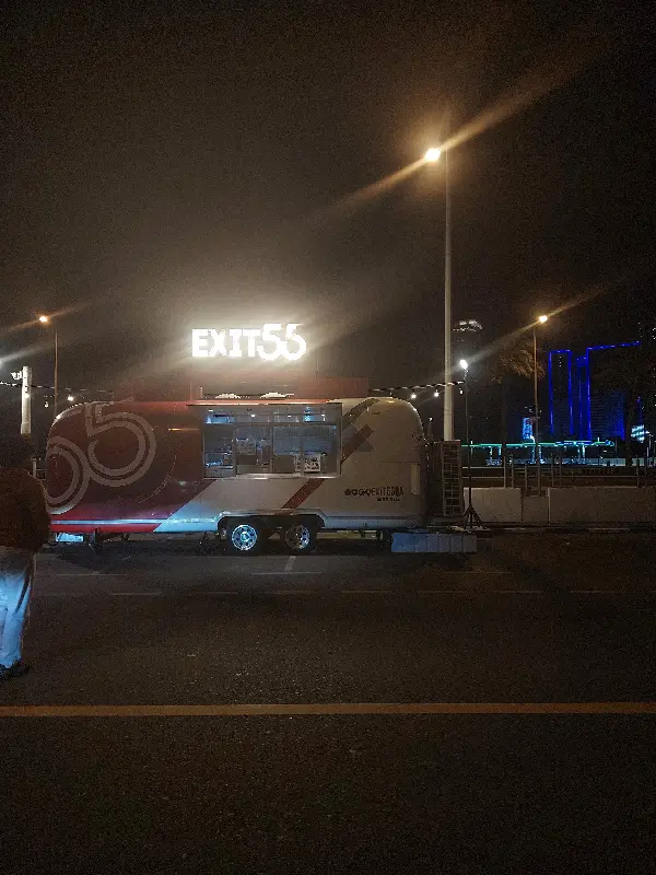 멀리서부터 눈에 띄는 Exit55의 간판. 밤하늘을 배경으로 빛나는 조명이 마치 나를 부르는 듯했다. 깔끔하게 정돈된 푸드 트럭 형태의 매장은 현대적이면서도 개성 넘치는 분위기를 자아냈다. 늦은 시간임에도 불구하고, Exit55 앞에는 꽤 많은 사람들이 버거를 기다리고 있었다.