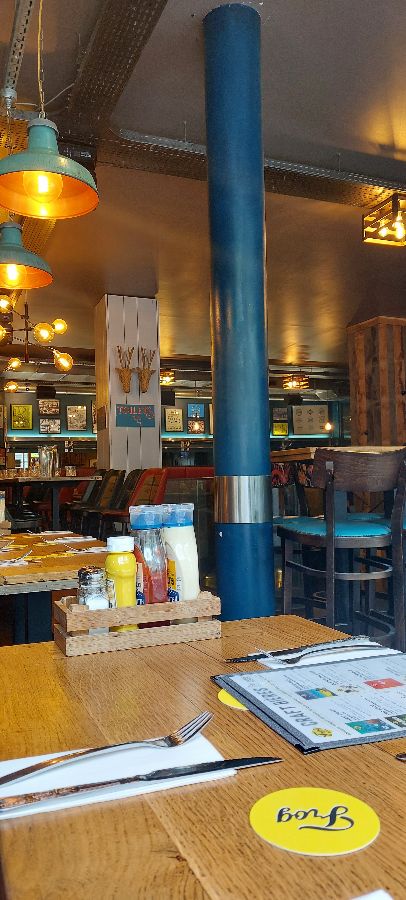 Frog Pubs는 바쁜 파리의 일상 속에서 잠시 벗어나 휴식을 취하고 싶은 이들에게 완벽한 안식처입니다. 내부로 들어서면 넓고 여유로운 공간이 펼쳐지는데, 평일에는 자리가 넉넉하여 번잡함 없이 식사를 즐길 수 있습니다. 전체적인 인테리어는 따뜻한 나무 테이블과 은은한 조명이 어우러져 아늑하면서도 세련된 분위기를 연출합니다.