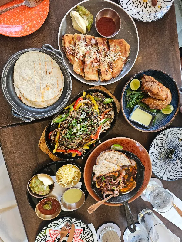 레스토랑에 들어서자마자 감탄사가 절로 나왔다. 은은한 조명 아래 펼쳐진 이국적인 인테리어는 마치 멕시코의 어느 작은 마을에 와 있는 듯한 착각을 불러일으켰다. 벽에 걸린 화려한 색감의 그림들과 멕시코 전통 모자를 쓴 마네킹, 그리고 테이블마다 놓인 선인장 화분들이 독특한 분위기를 더했다.