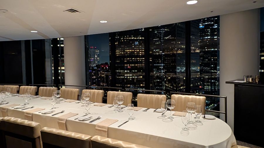 엘에이 다운타운의 스카이라인을 한눈에 담을 수 있는 35층은 그 자체로 웅장하고 압도적인 분위기를 자아냅니다. 해가 지기 시작하면 붉게 물드는 석양과 함께 도시가 하나둘 불을 밝히기 시작하고, 이내 화려한 야경이 창밖 가득 펼쳐집니다. 이 시각적인 황홀경은 식사의 시작을 더욱 설레게 만들며, 바쁜 일상 속에서 잠시 잊고 지냈던 여유와 낭만을 선사합니다.