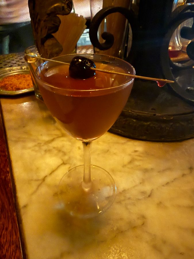 드디어 기다리던 칵테일이 제 앞에 놓였습니다. 바텐더는 저에게 메뉴에서 가장 인기 있는 칵테일 중 하나인 ‘타이거스 밀크’와 ‘하빈저 오브 펀’을 추천했습니다. 붉은 빛이 감도는 ‘하빈저 오브 펀’은 우아한 잔에 담겨 나왔고, 그 위에는 짙은 체리 하나가 콕 박혀 있었습니다. 칵테일의 영롱한 색감은 은은한 조명 아래 더욱 빛났습니다.