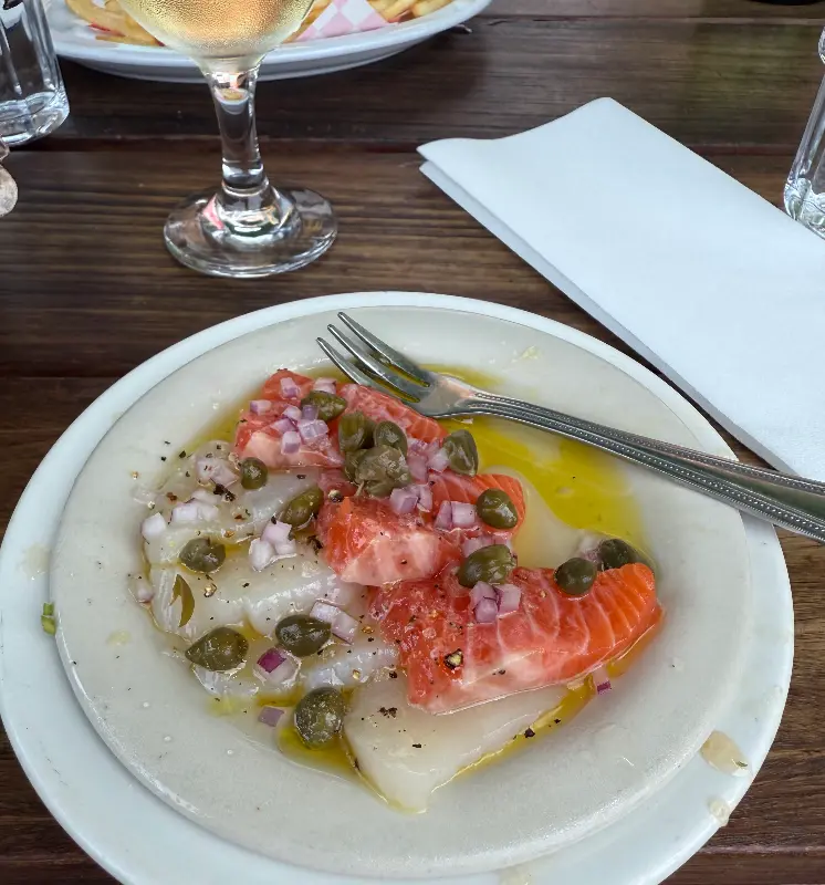 시칠리아식 크루도 또한 훌륭했습니다. 신선한 해산물에 상큼한 소스가 곁들여져 입맛을 돋우는 데 제격이었습니다. 얼음 위에 얹은 베르무트와 함께 곁들여 먹으니 더욱 풍성한 맛을 느낄 수 있었습니다.