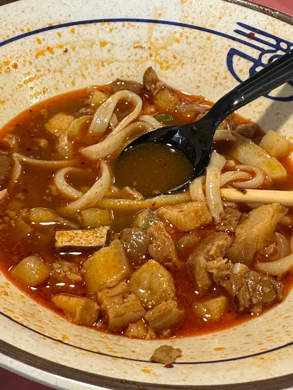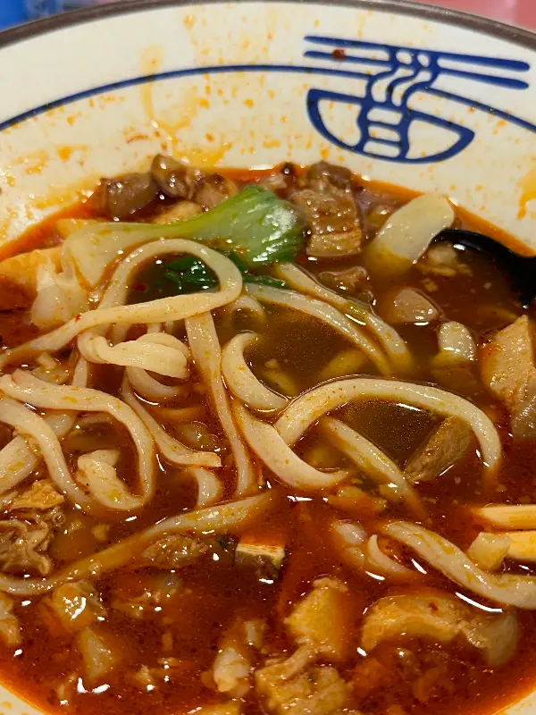 국물 한 모금을 맛보니, 은은한 마라 향과 함께 깊고 진한 소고기의 풍미가 느껴졌다. 맵기는 딱 적당해서, 입안이 얼얼해지는 듯하면서도 자꾸만 끌리는 맛이었다. 면발은 요우파우면과는 또 다른 매력을 지니고 있었다. 좀 더 얇고 부드러워서, 국물과 함께 후루룩 넘어가는 식감이 일품이었다.