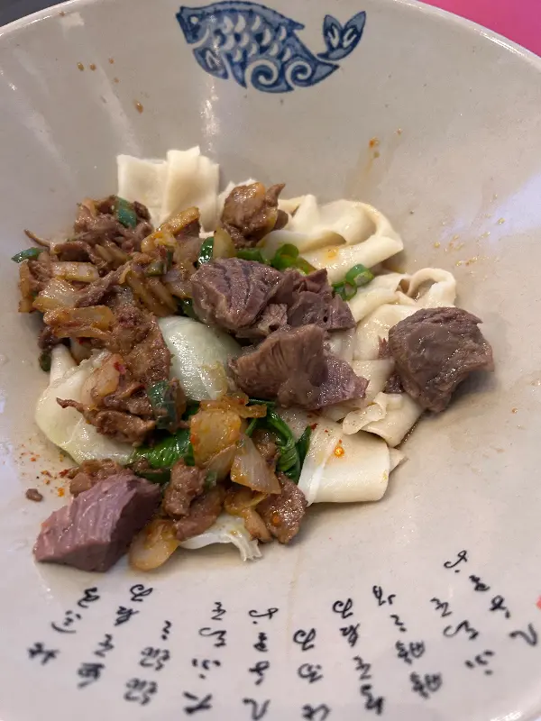 Braised Beef Stew는 맵기 조절이 가능했는데, 나는 중간 맵기로 선택했다. 잠시 후, 커다란 그릇에 담겨 나온 Beef Stew는 보기만 해도 푸짐했다. 큼지막한 소고기 스튜 조각과 신선한 채소, 그리고 쫄깃한 면발이 어우러진 모습은 마치 예술 작품과도 같았다 (Image 2).