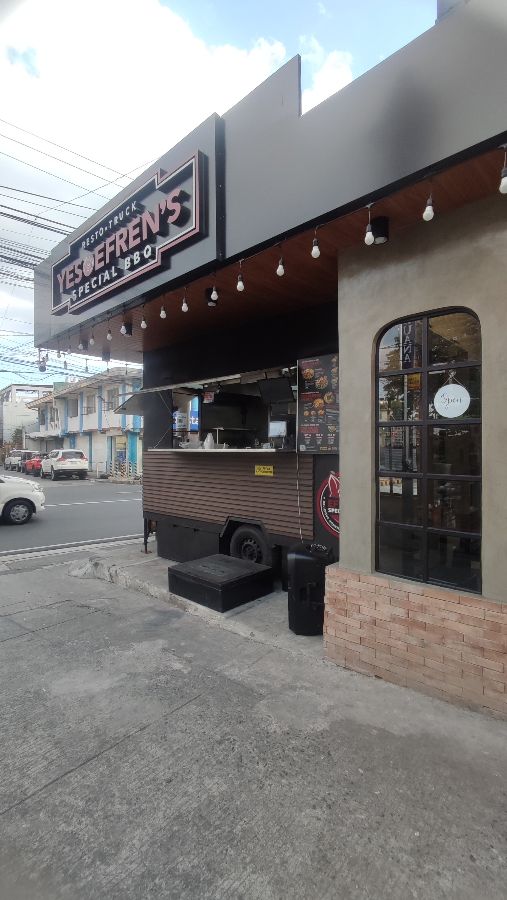 멀리서도 큼지막하게 눈에 띄는 ‘RESTO+TRUCK YES EFREN’S SPECIAL BBQ’라는 간판은 이곳이 단순한 길거리 음식이 아님을 직관적으로 보여주었습니다. 푸드트럭의 형태를 띠고 있지만, 벽돌을 쌓아 올린 듯한 하부 장식과 처마에 매달린 은은한 백열등들이 어우러져, 마치 작은 레스토랑 같은 고유의 분위기를 자아냅니다. 길가를 오가는 사람들에게 언제든 따뜻한 바비큐 한 조각을 내어줄 준비가 되어 있는 듯, 활짝 열린 푸드트럭 창구 너머로는 분주하게 움직이는 손길들이 엿보였습니다. 여유로운 주차 공간은 이곳을 방문하는 이들의 편의를 최대한 배려한 흔적이었습니다.