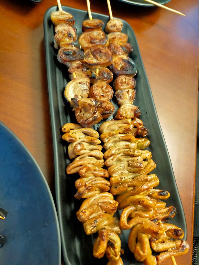 함께 주문한 다양한 내장 꼬치들도 빼놓을 수 없는 별미였습니다. 길고 검은 접시 위에 가지런히 놓인 이사우(돼지 내장), 텡가(돼지 귀), 불라클락(돼지 창자) 등은 쫄깃한 식감과 특유의 고소함으로 바비큐와는 또 다른 즐거움을 선사했습니다. 겉은 바삭하고 속은 촉촉하게 잘 구워져, 맥주 한 잔과 함께라면 더할 나위 없이 완벽한 조합이 될 것 같았습니다.