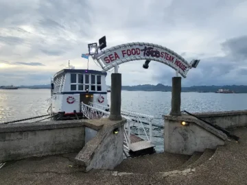 기분 좋은 설렘을 안고 Tikos Floating Restaurant으로 향하는 발걸음. 선착장에 다다르자, 물 위에 떠 있는 레스토랑의 모습이…