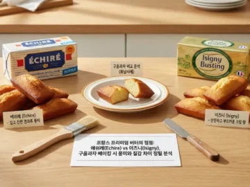 프랑스 프리미엄 버터의 양대 산맥, 에쉬레와 이즈니의 베이킹 퍼포먼스를 정밀 비교합니다. 휘낭시에의 풍미와 식감을 결정짓는 결정적 차이와 선택 가이드를 확인하세요.