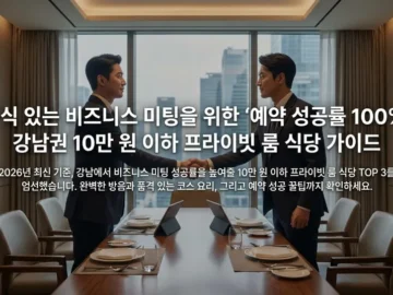 2026년 최신 기준, 강남에서 비즈니스 미팅 성공률을 높여줄 10만 원 이하 프라이빗 룸 식당 TOP 3를 엄선했습니다. 완벽한 방음과 품격 있는 코스 요리, 그리고 예약 성공 꿀팁까지 확인하세요.